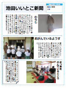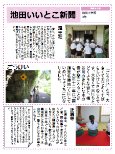 池田小学校の近辺には自慢の場所がたくさんあります。毎年池田小学校の児童は「池田いいとこさがし」と題してふるさと池田のいいとこ探しに取り組んでいます